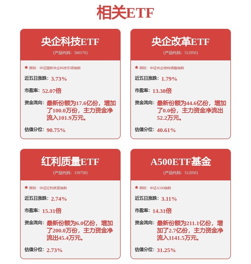 资金借代表性宽基指数低位布局,近5个交易日,A500ETF基金(512050)获得资金净流入超4.89亿元,其所跟踪的中证A500指数汇聚各行业龙头资产,是A股核心资产的集合,相对沪深300,信息技术、低空经济、新能源等新质生产力板块占比更高,除此之外,该ETF风格较为均衡,适合作为底仓配置。相关ETF全称:华夏中证A500ETF(512050),联接基金(A类:022430;C类:022431)